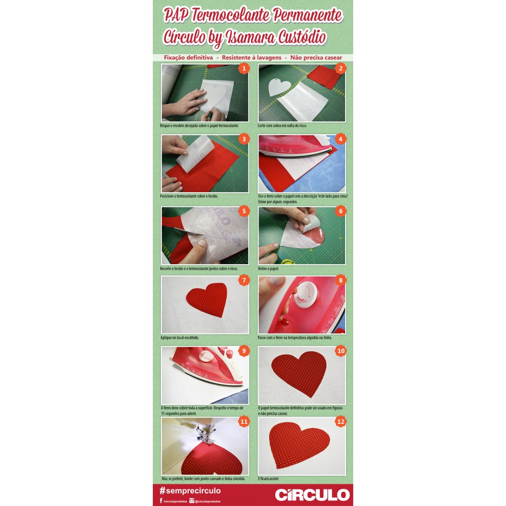 O Termocolante Permanente oferece inúmera possibilidades! Desenvolvido especialmente para trabalhos artesanais de costura, como patchwork, quilt e apliques em geral, o material agrega mais qualidade, praticidade e durabilidade nas suas criações.