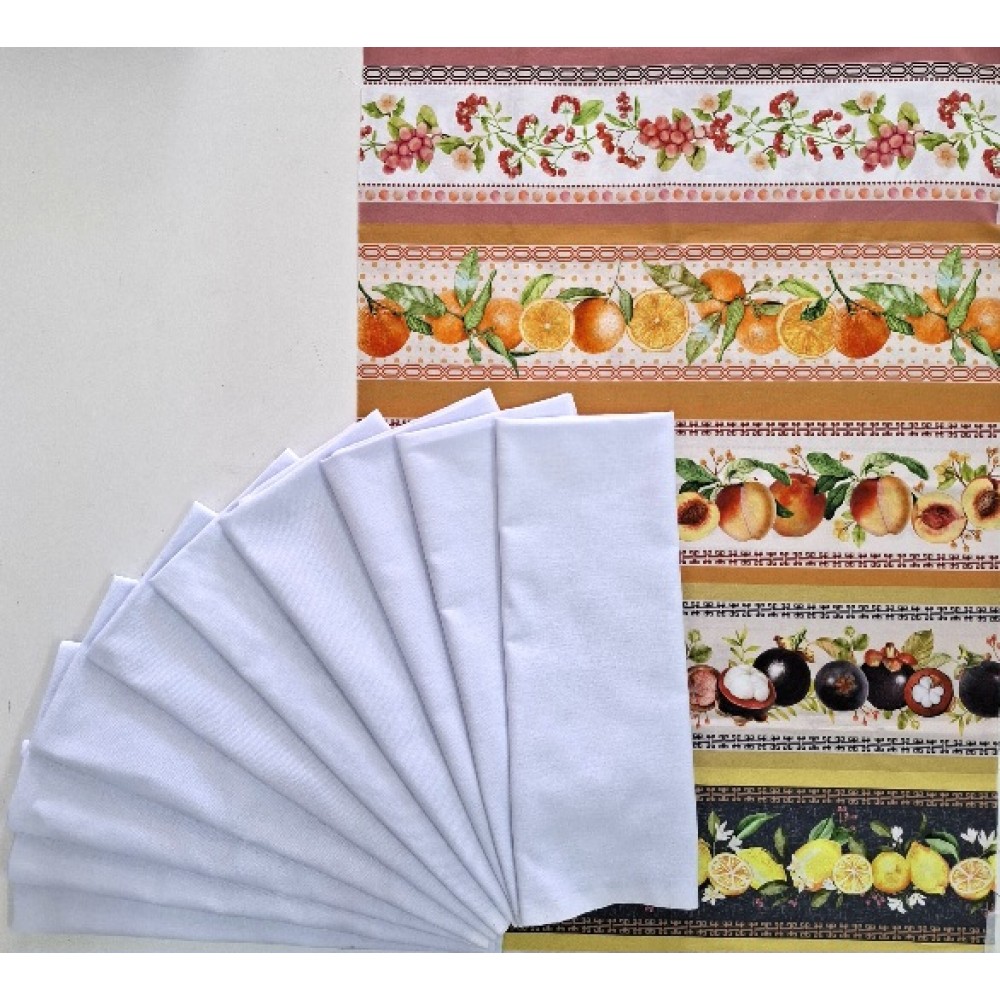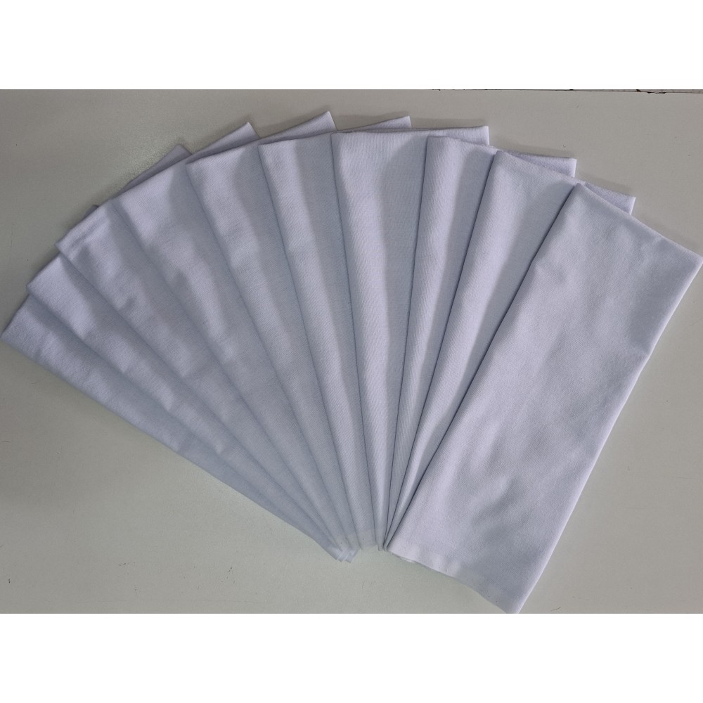 - 10 panos de copa brancos: em algodão alvejado 100%, com dimensões de 44x75cm, prontos para receber sua criatividade!