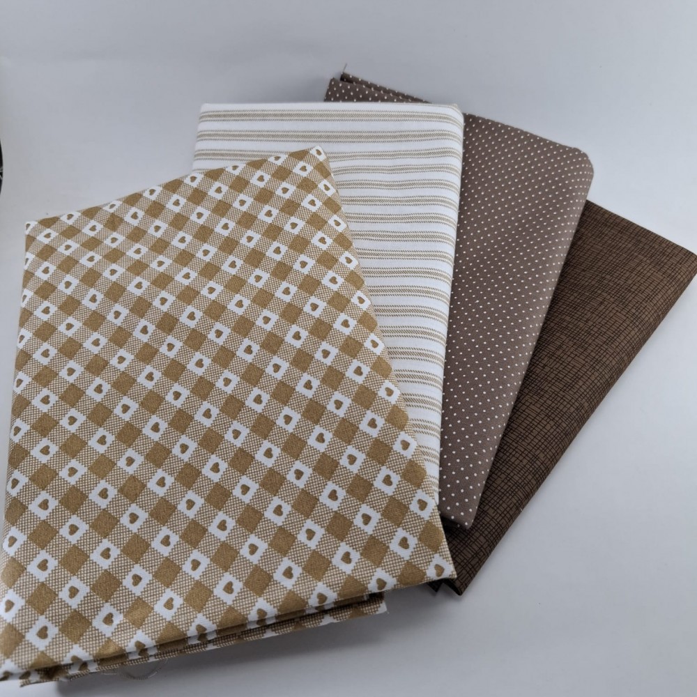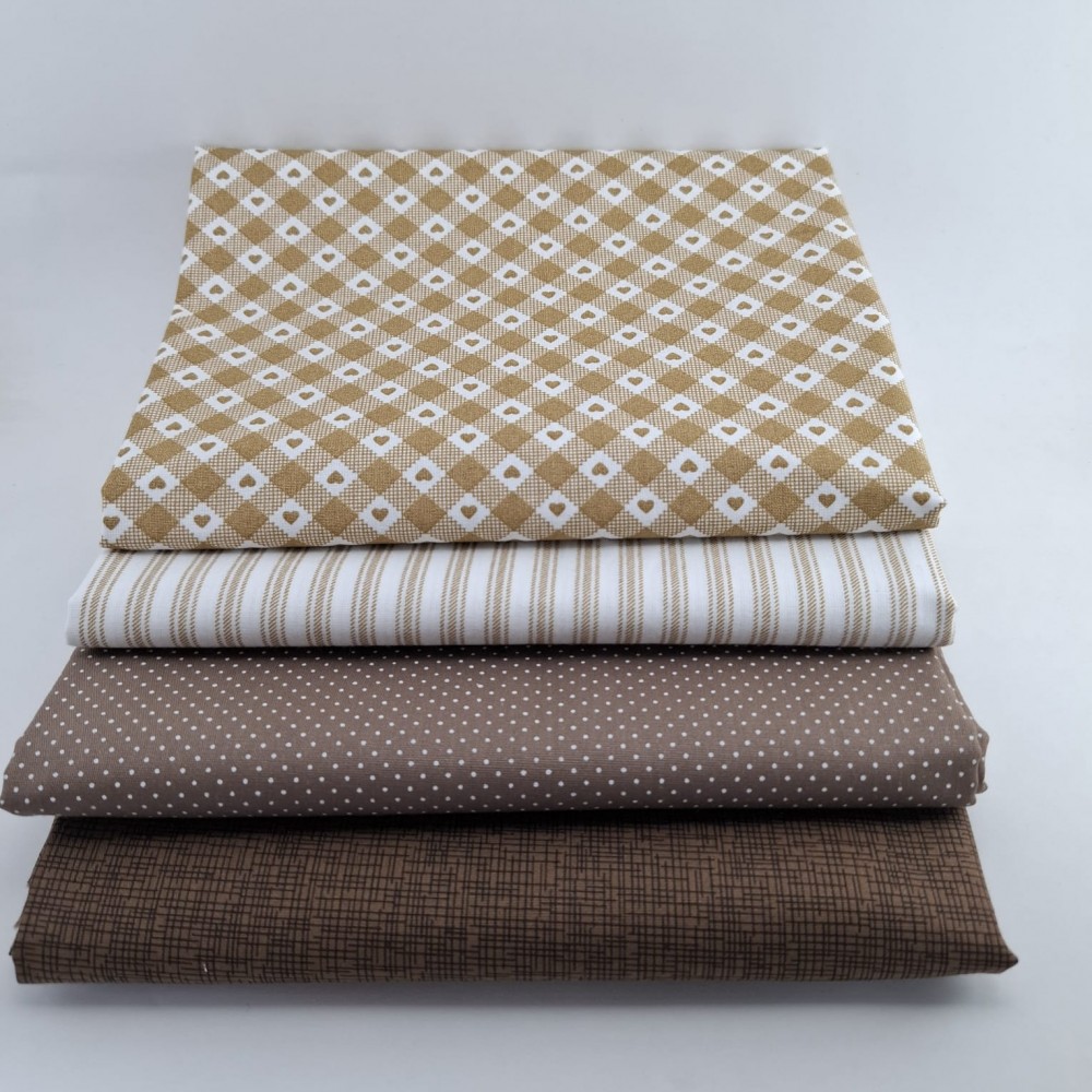 KIT 07 - FAT QUARTER TRICOLINE LISTRAS E SONHOS MARROM