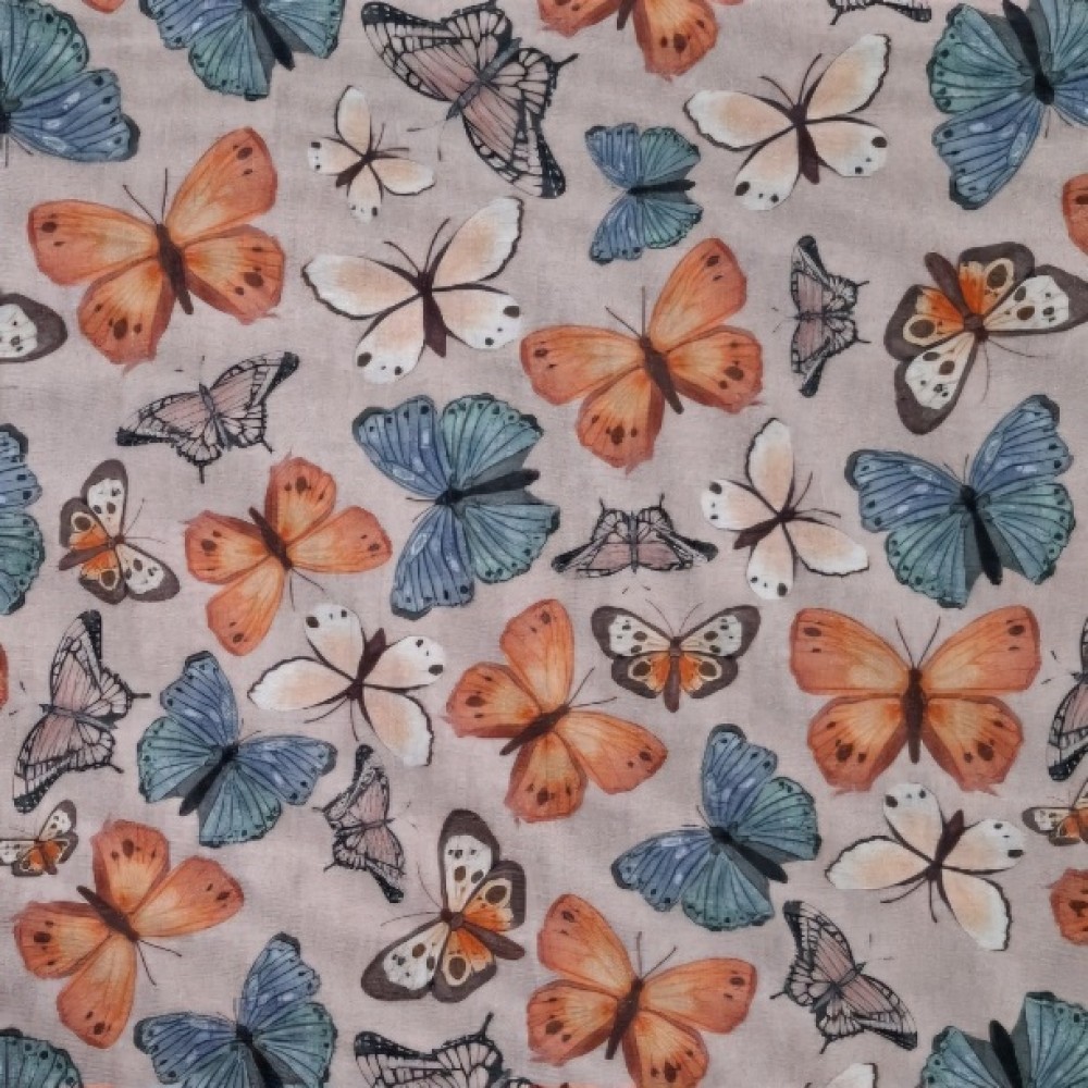 TECIDO TRICOLINE 100% ALGODÃO BORBOLETAS COLORIDAS - 0,5x1,50m