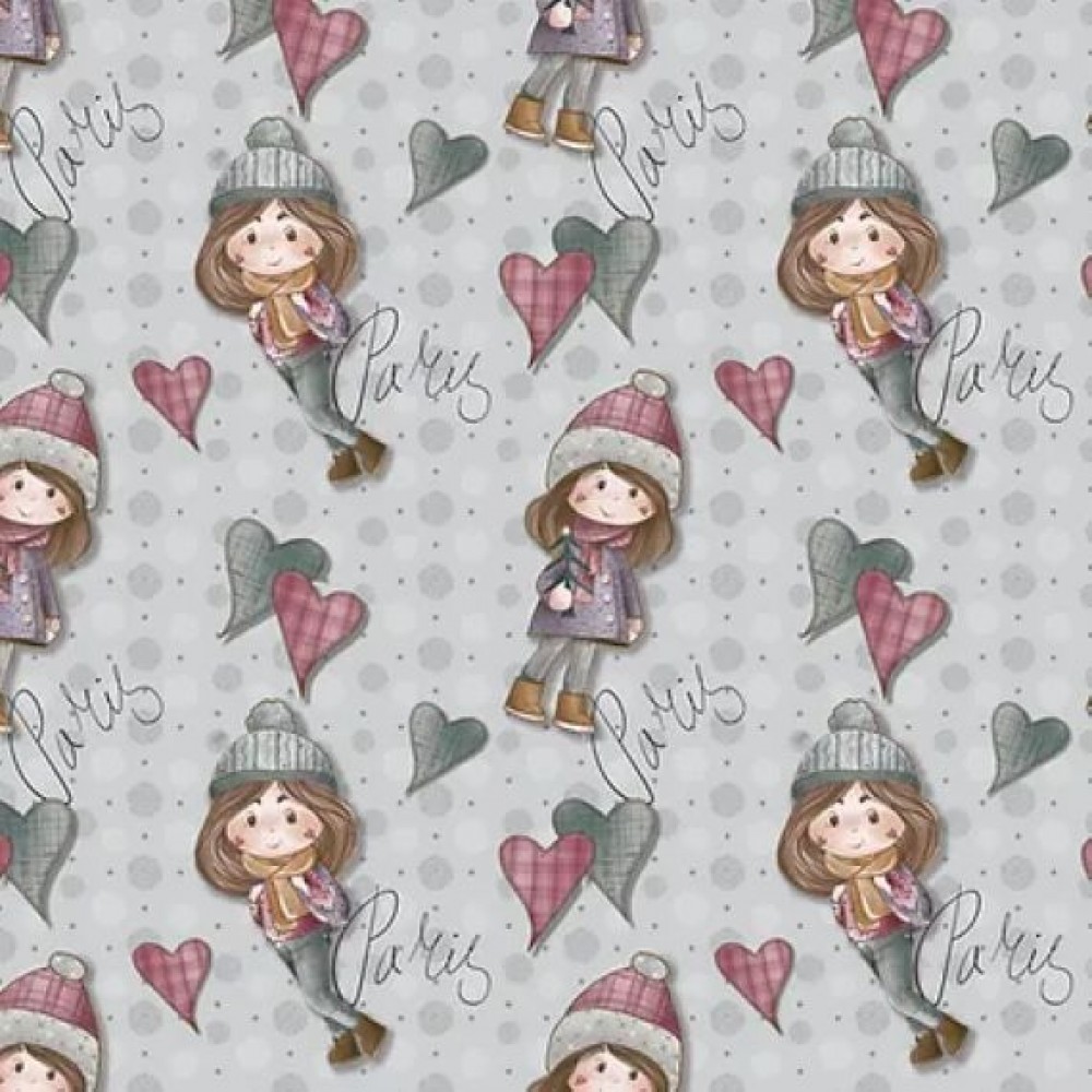 AR-TECIDO TRICOLINE 100% ALG DIGITAL MENINAS EM PARIS FD AZUL - 0,5X1,50MT